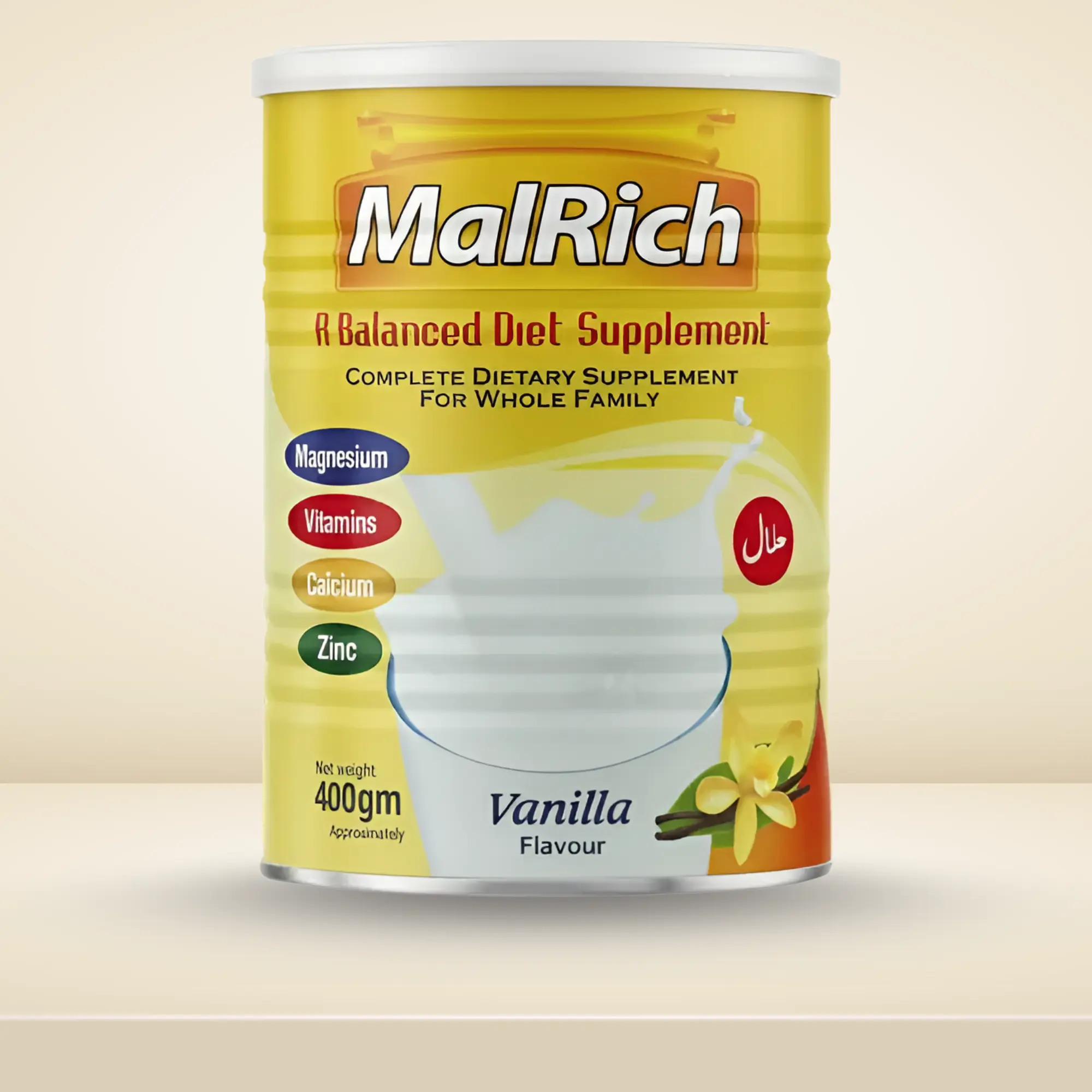 MalRich Healthy Weight Gain Milk Powder is a nutritional supplement designed to support healthy weight gain, muscle growth, and overall wellness. Enriched with proteins, vitamins, and minerals, it provides calories and nutrients needed to achieve optimal body mass and strength.